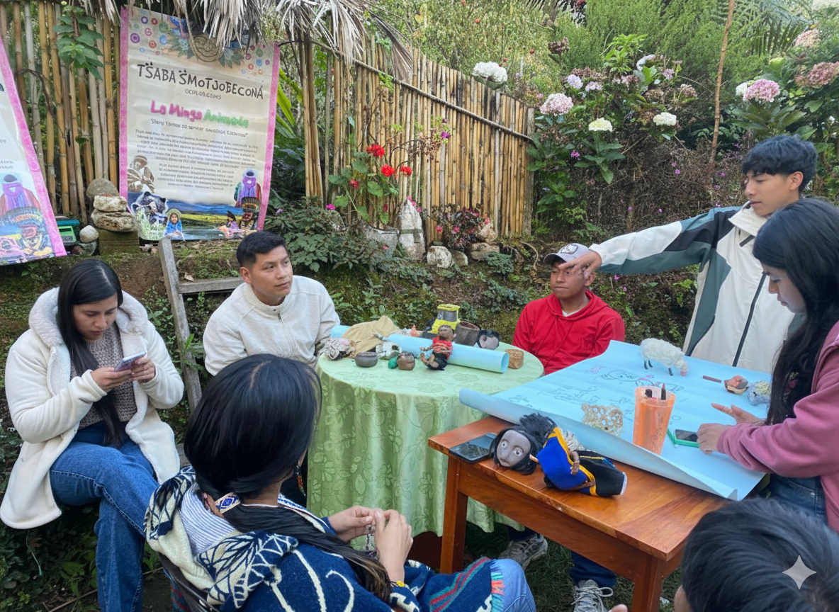 Este proceso propio y autogestionado se sustenta en la colaboración de diversos actores clave, como sabedores, artesanas y profesionales del sector audiovisual, todos ellos habitantes del territorio ancestral de Tabanók a excepción de algunos